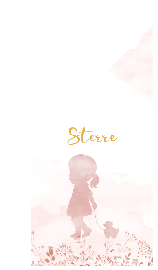 Lief toch, deze geboortevlag in roze waterverf?! Een klein meisje wandelt met een klein eendje door een bloemenveld. Een leuke manier om iedereen te laten weten dat jullie een dochtertje hebben gekregen.