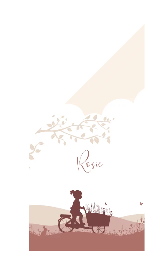 Hoera, de vlag kan uit, jullie kleintje is geboren! Op de geboortevlag staat het silhouet van een meisje op een bakfiets, de bloemetjes maken het bord extra vrolijk. De vlag is naar wens op te maken in de online editor.