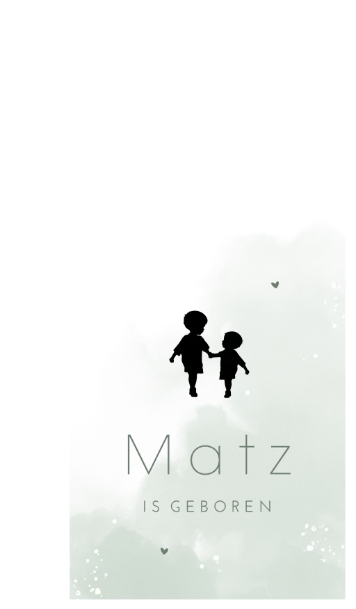 Een broertje geboren, de vlag kan uit! Deze vlag heeft het design met mintgroene aquarel, waarop het silhouet van broertjes die hand in hand lopen. De kleine hartjes maken het compleet, lief!