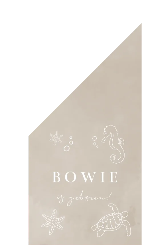 Laat de hele buurt weten dat je kleintje is geboren! De vlag heeft een beige velvet-look achtergrond met de lijntekeningen van zeedieren. De vlag kan helemaal naar wens aangepast worden in onze online editor.
