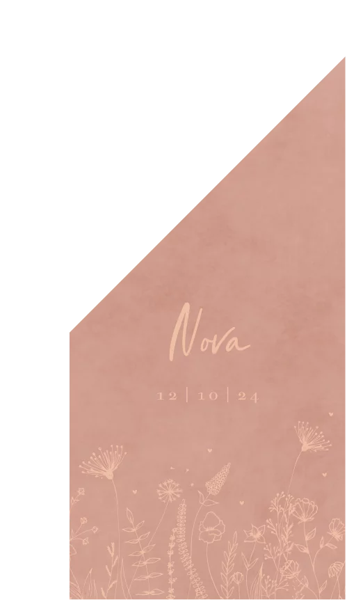 Kondig de geboorte van jullie meisje aan met deze geboortevlag. De vlag heeft een roze velvet-look achtergrond. De naam, geboortedatum en het hartje worden gedrukt in peachkleur.