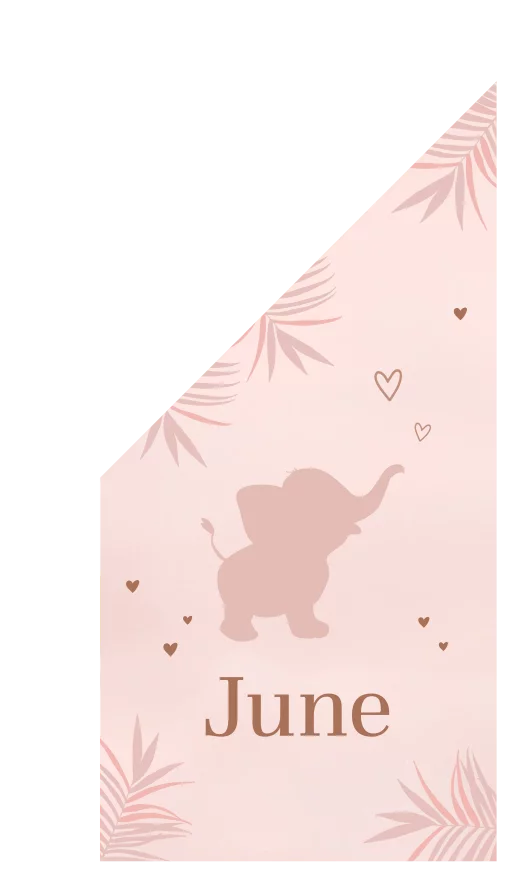 Hoera, er is een meisje geboren, de vlag kan uit! Op deze lichtroze geboortevlag loopt een vrolijk roestbruin olifantje door de jungle. Eronder staat de naam van de kleine meid en de bruine hartjes er omheen maken het compleet, echt lief!