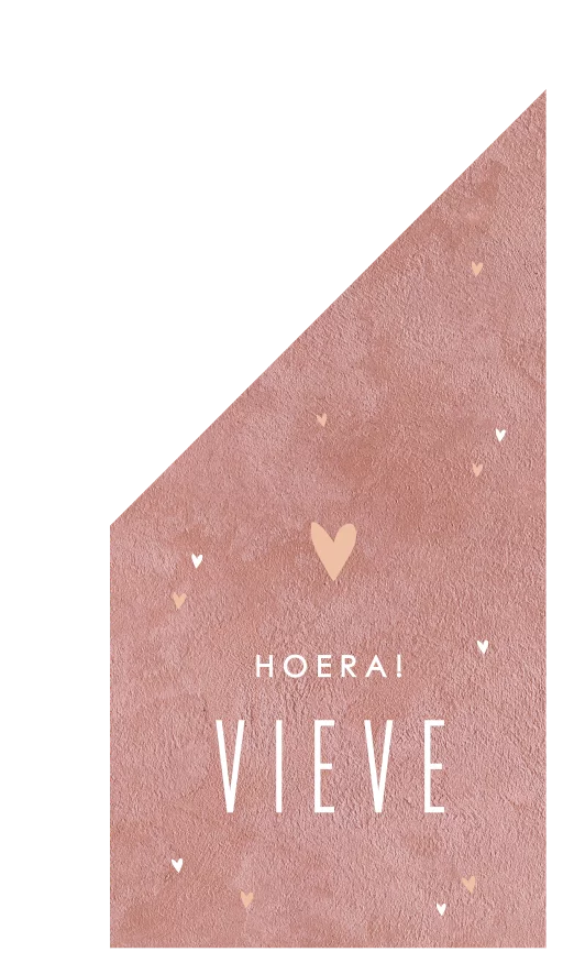 De vlag kan uit: jullie dochtertje is geboren! Op deze roze geboortevlag met kleine roze en witte hartjes staat de naam in trendy typografie, pas deze zelf eenvoudig aan in de online editor.