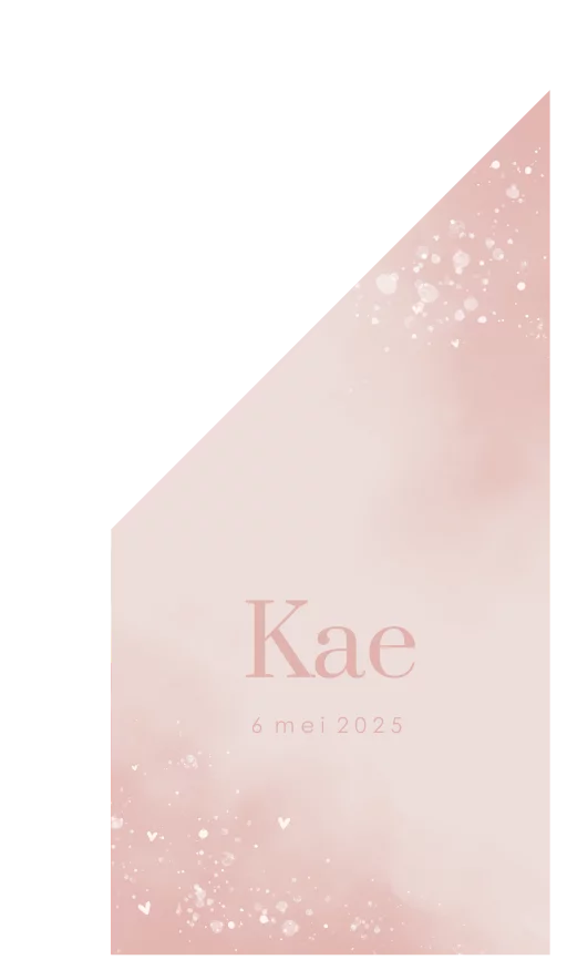 Een hippe geboortevlag om de geboorte van jouw kindje aan te kondigen. De vlag heeft roze watercolour achtergrond met daarop lieve hartjes. Pas het ontwerp naar wens aan in onze online editor.