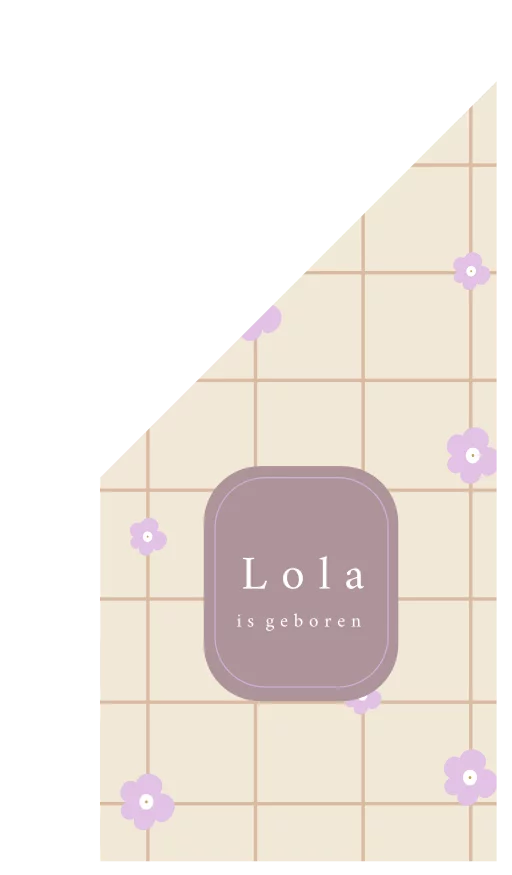 Hoera, jullie kindje is geboren! Deze trendy geboortevlag heeft een ruitjes patroon met lila bloemetjes. Pas de vlag naar wens aan in onze opmaaktool.