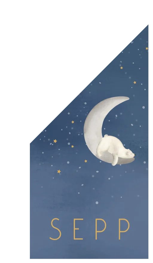Jullie kleintje is geboren en de hele buurt mag het weten! Deze vlag heeft een donkerblauwe achtergrond met een prachtige sterrenhemel, een ijsbeer die ligt te slapen op de maan en de naam van jullie kleintje. De vlag kan helemaal naar wens aangepast worden in onze online editor.