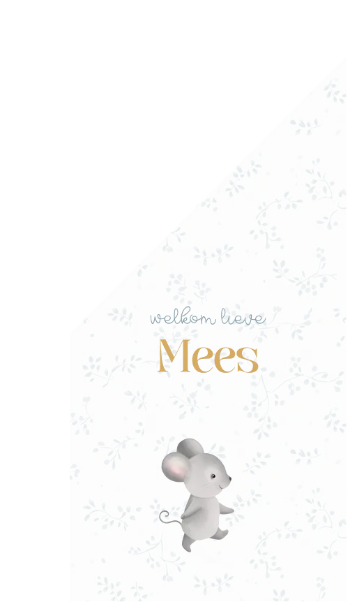 Je kleintje is geboren en dat mag de hele buurt weten! Op deze vlag staat een patroon van kleine blauwe takjes met de illustratie van een muisje. De vlag kan helemaal naar wens aangepast worden in onze online editor.