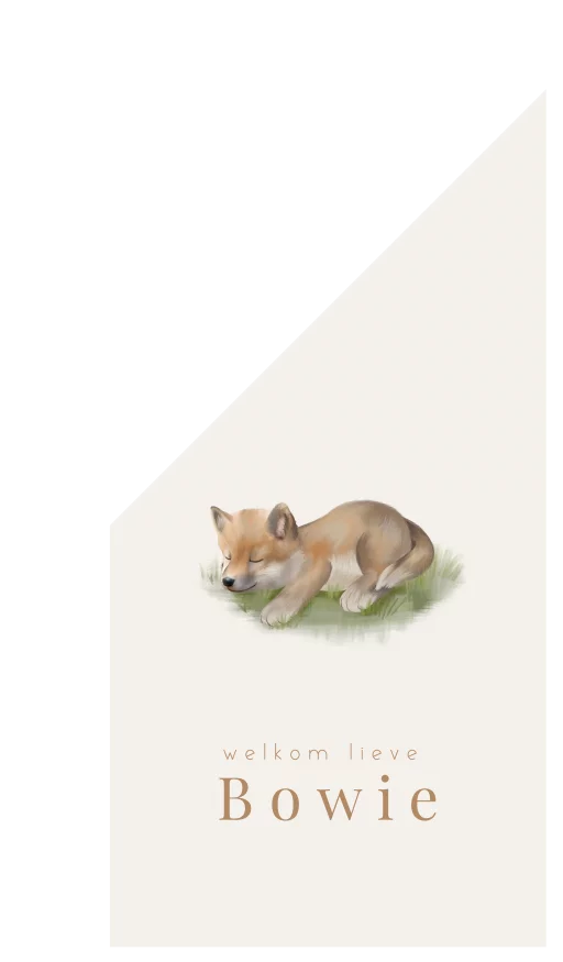 Laat de hele buurt weten dat je kleintje is geboren met deze vlag! De vlag heeft een lichte achtergrond met de watercolour illustratie van een slapende wolf in het gras. Pas de vlag naar wens aan in onze online editor.