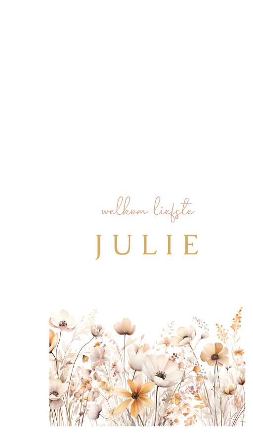 Kondig de geboorte aan met deze vlag in de stijl van het geboortekaartje. De vlag heeft een witte achtergrond met daarop bloemen. Let op! Wil je deze vlag personaliseren? Vergeet dan niet om beide zijdes van de vlag aan te passen.