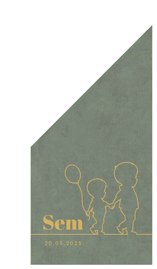 Laat iedereen weten dat jullie kindje geboren is met deze hippe groene geboortevlag! Deze leuke vlag heeft een lijntekening van een jongetje met zijn grote broer. In zijn handen houdt hij een ballon vast. De vlag heeft een groene 'velvet' ondergrond. Pas de vlag naar wens aan.