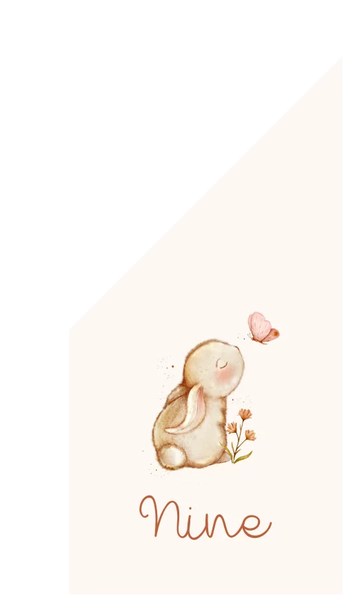 Laat iedereen weten dat jullie kindje geboren is met deze hippe geboortevlag met een lief konijntje en vlinder. De vlag heeft een creme kleurige ondergrond. Pas de vlag naar wens aan in onze online opmaaktool.
