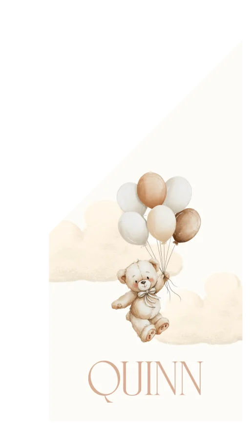 Hoera! Jullie kindje is geboren en iedereen mag het weten. Deze geboortevlag heeft een beige achtergrond met daarop een beertje met ballonnen. Onder de afbeelding is er ruimte voor de naam van jouw kindje. Pas de vlag gemakkelijk zelf aan in onze online opmaaktool. Let op! Wil je deze vlag personaliseren? Vergeet dan niet om beide zijdes van de vlag aan te passen.