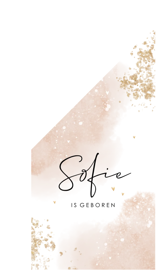 De vlag kan uit: jullie dochtertje is geboren! Op deze roze geboortevlag met watercolour achtergrond en hartjes staat de naam in trendy typografie, pas deze zelf eenvoudig aan in de online editor.