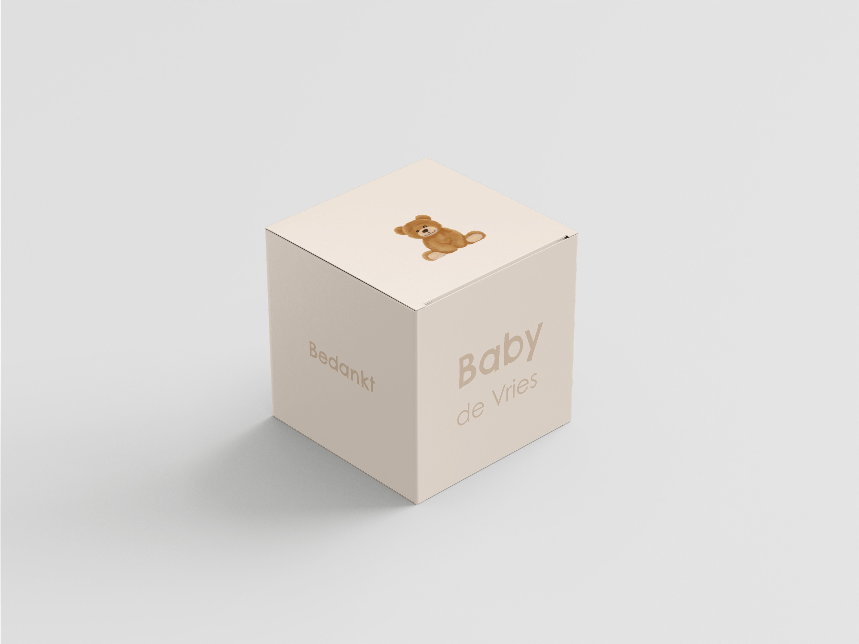 Dit lieve bedankdoosje met creme witte achtergrond en teddybeertjes is de perfecte bedankt voor een babyshower of gender reveal. Bedank vrienden en familie in de stijl voor hun komst. Deze doosjes zijn 5 cm hoog, breed en diep én do-it-yourself: ze worden namelijk ongevouwen geleverd.