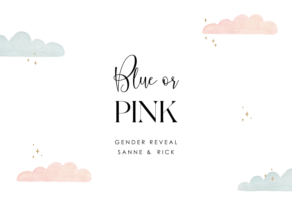 Met deze placemats maak je de babyshower compleet. De placemat heeft een witte achtergrond met vrolijke roze met blauwe wolkjes. Maak de tafelsetting van jullie babyshower hiermee compleet.