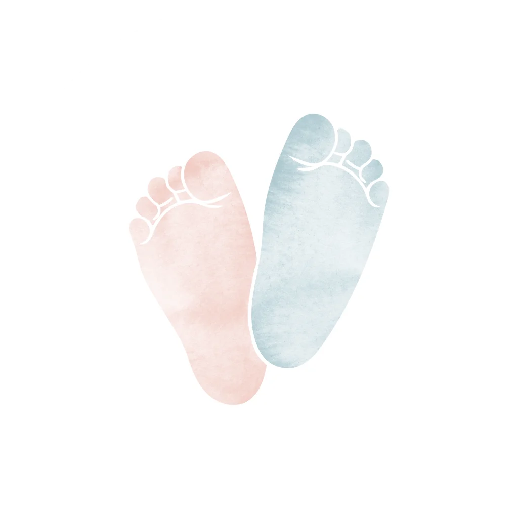 Een lieve sticker voor op bedankjes of ter versiering. De sticker heeft een witte achtergrond met daarop roze en blauw voetjes. Pas het ontwerp naar wens zelf aan.