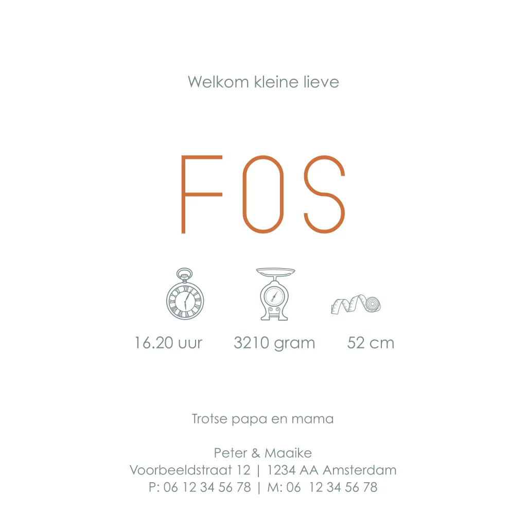 De grijsblauwe achtergrond van dit kaartje zorgt voor een stoere uitstraling en past prachtig bij de koperkleurige typografie. Pas het kaartje aan in de online editor en bestel snel een proefdruk om dit kaartje in het echt te zien!