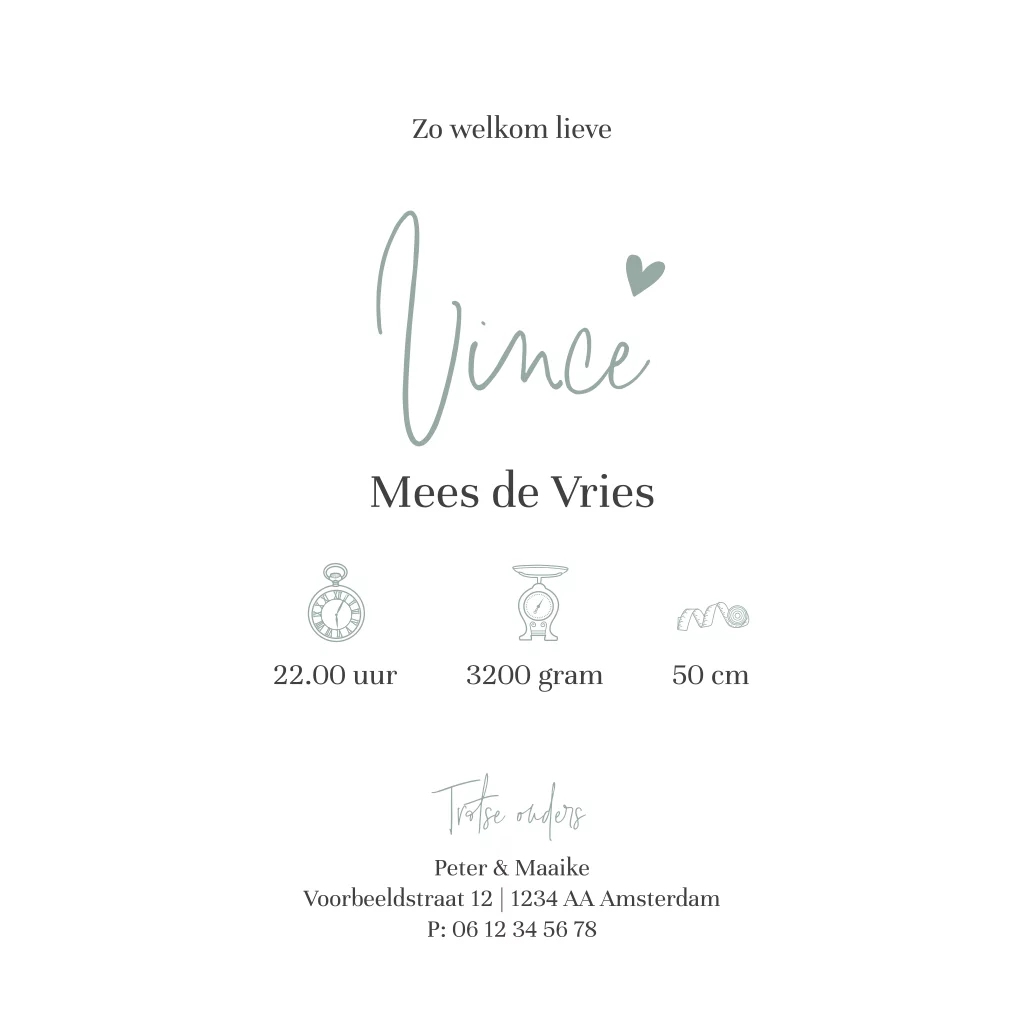 Lief minimalistisch geboortekaartje met hartje voor een jongen