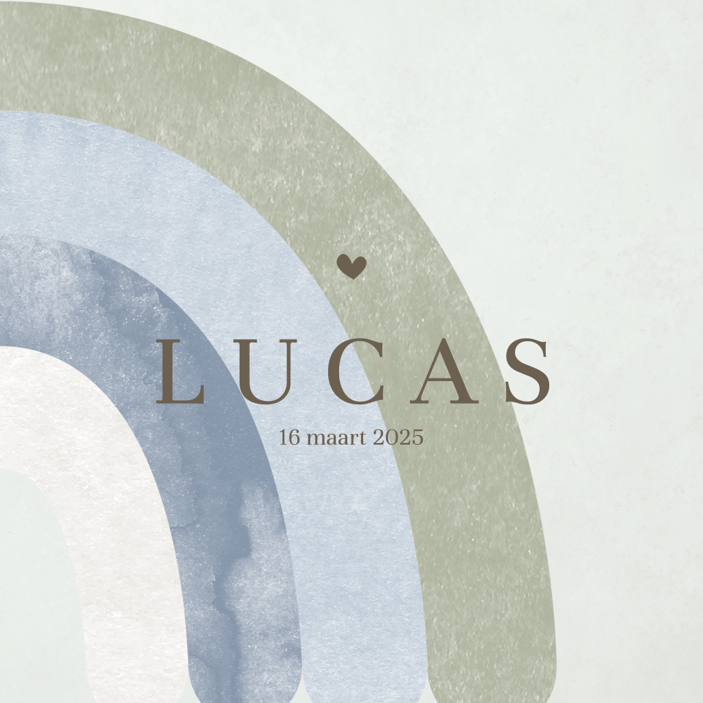 Dit is een lief kaartje voor jullie pasgeboren zoontje. De regenboog in blauw- en groentinten en het hartje geven dit kaartje een schattige uitstraling.