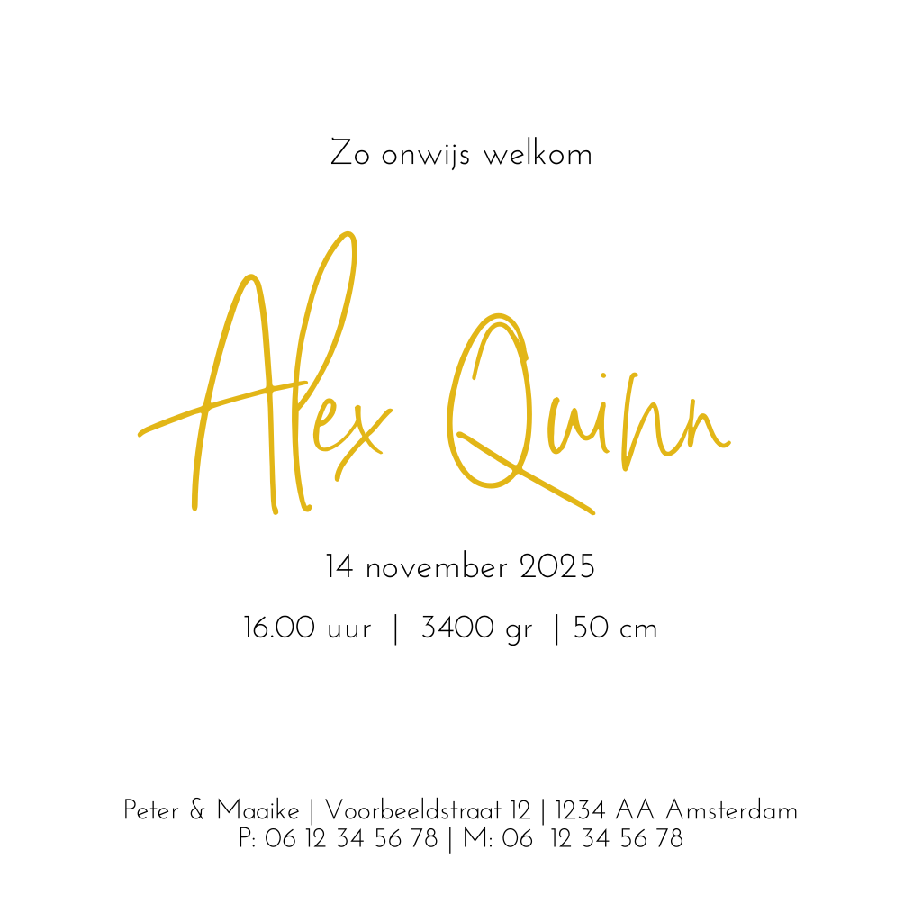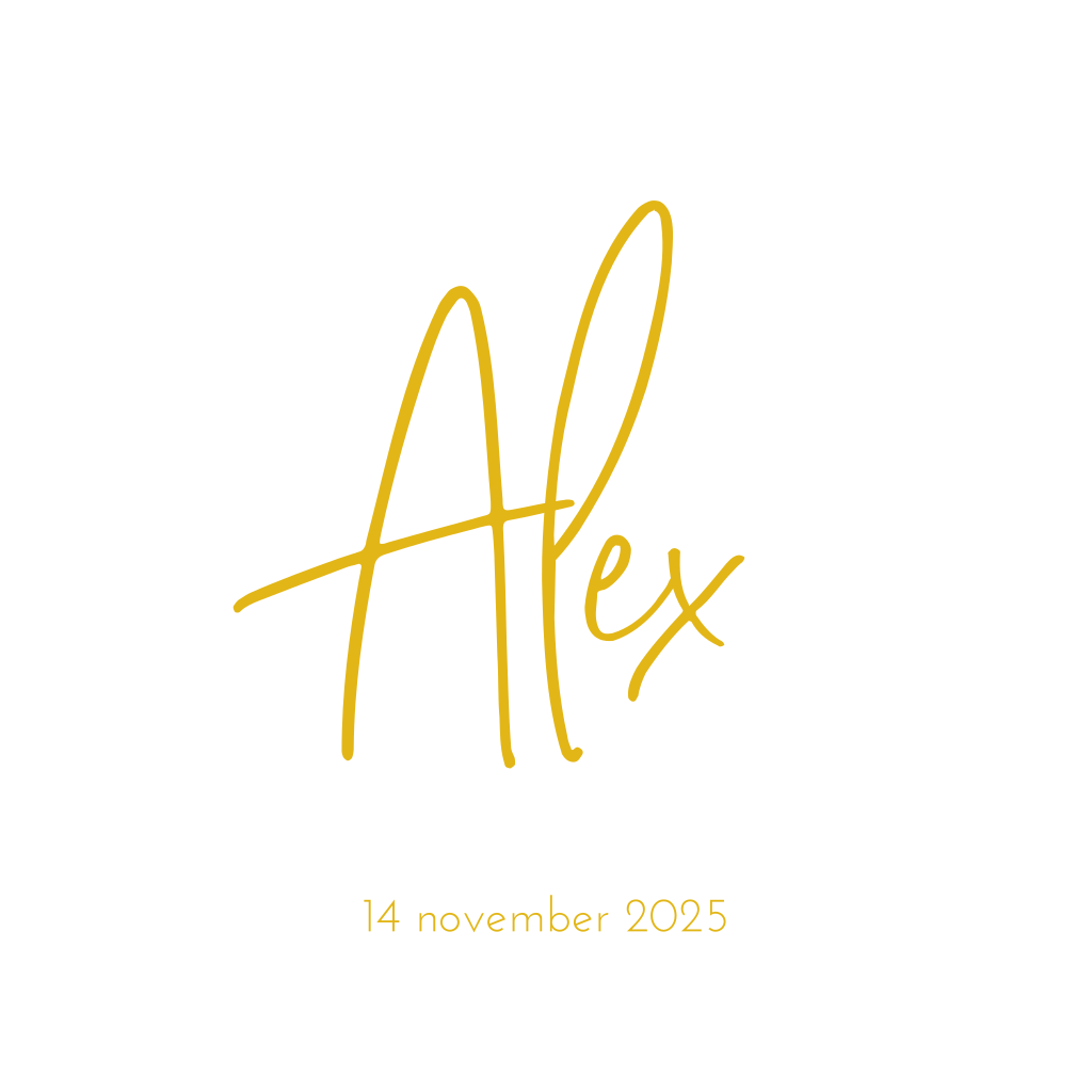 Minimalistisch geboortekaartje met goud en wit voor een jongen