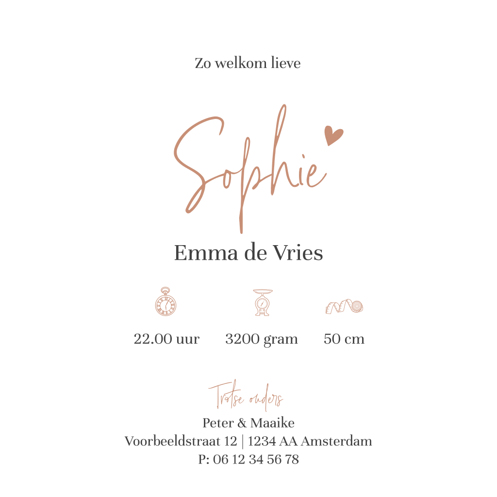 Minimalistisch geboortekaartje met hartje voor een meisje
