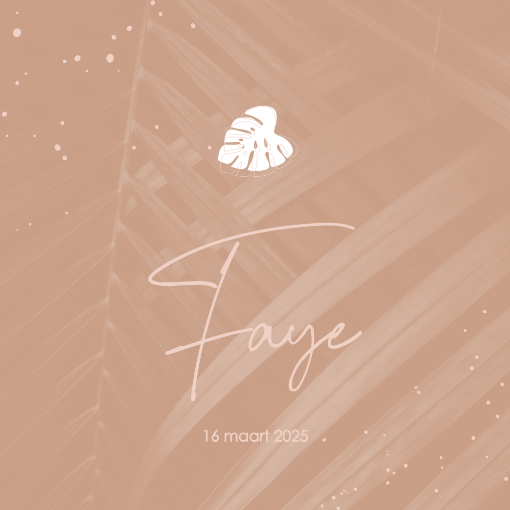 Dit kaartje is super stijlvol. Op de achtergrond is een licht motief van jungle bladeren te zien met in twee hoeken verfspetters. De rosé goudkleurige details maken dit kaartje helemaal af. Pas het kaartje aan in de online editor en bestel snel een proefdruk om dit kaartje in het echt te zien!