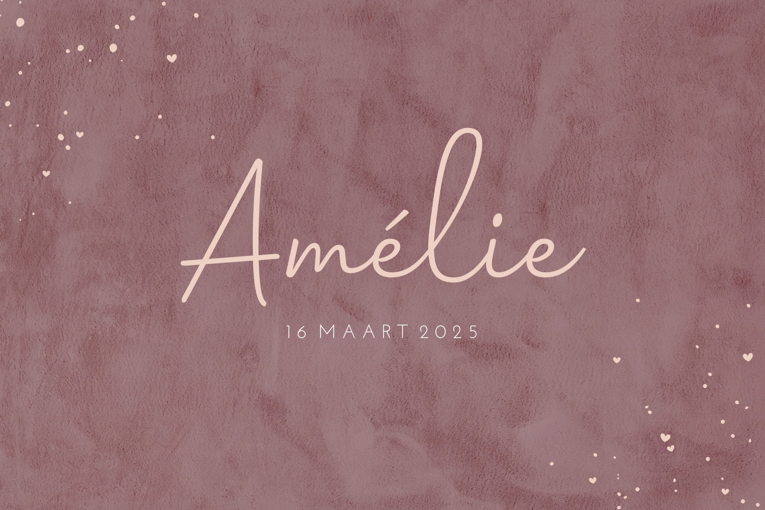 Romantisch geboortekaartje met hartjes en verfspetters voor een meisje