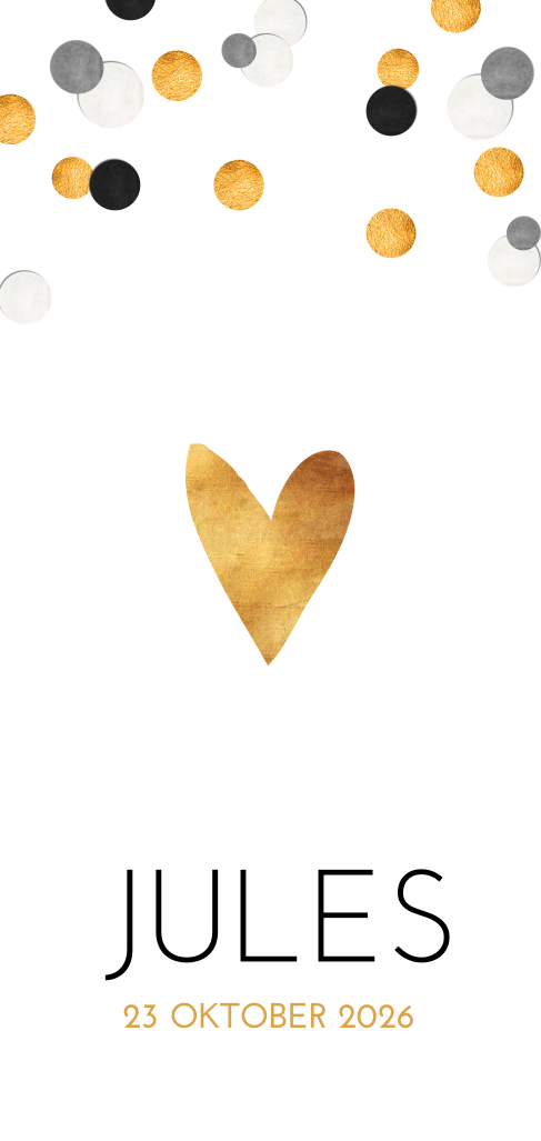 Een feestelijk kaartje met vrolijke confetti. Het hartje met goudlook maakt dit kaartje helemaal af.