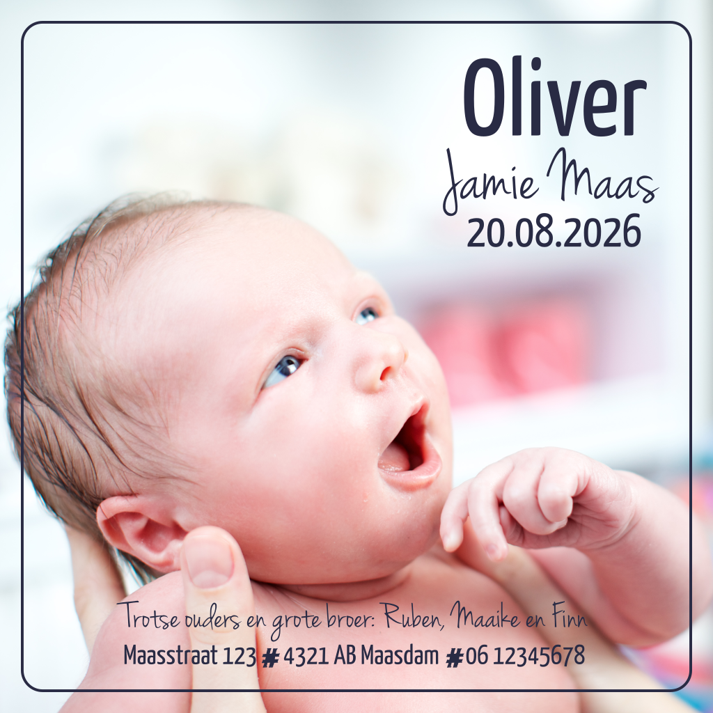Leuk simpel kaartje met een blauwe rand en volledige ruimte voor een foto.