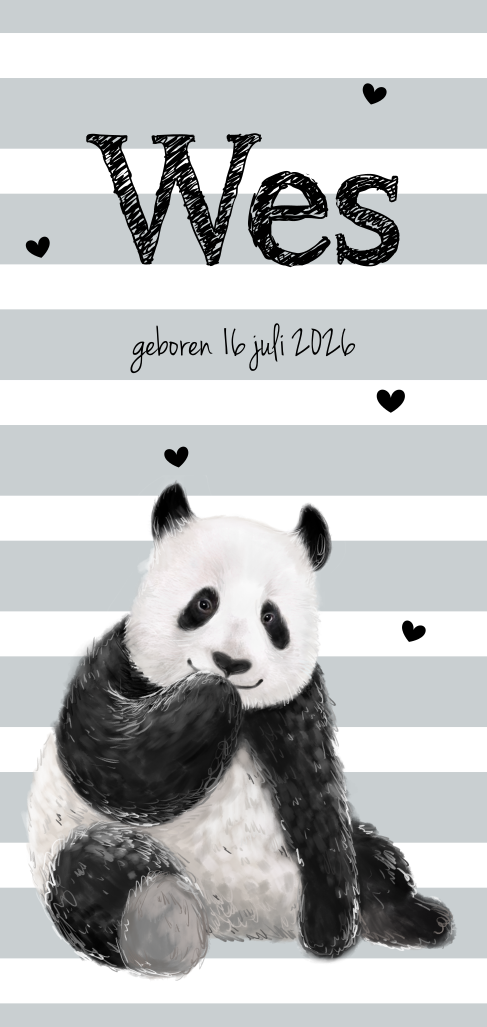 Een geboortekaartje om verliefd op te worden. Dit originele ontwerp is gemaakt door hipDesign. Speciaal voor Hippe Geboortekaartjes ontwierpen zij deze prachtig geschilderde panda. Dit maakt deze geboortekaart nog meer uniek!