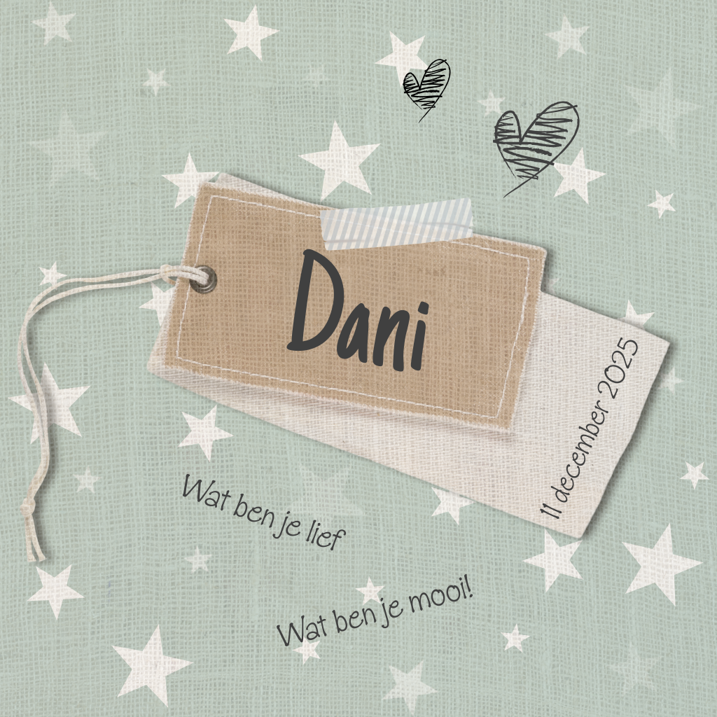 Leuk retro kaartje met sterren, hartjes en een stoer label.