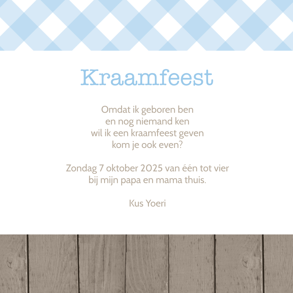 Leuke babyborrel uitnodiging met ruit en steigerhout. Bekijk hier het bijpassende geboortekaartje.