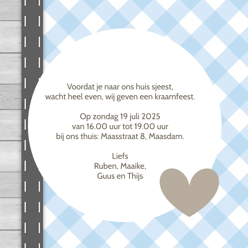 Romantische kraamborrel uitnodiging voor jongen met ruiten
