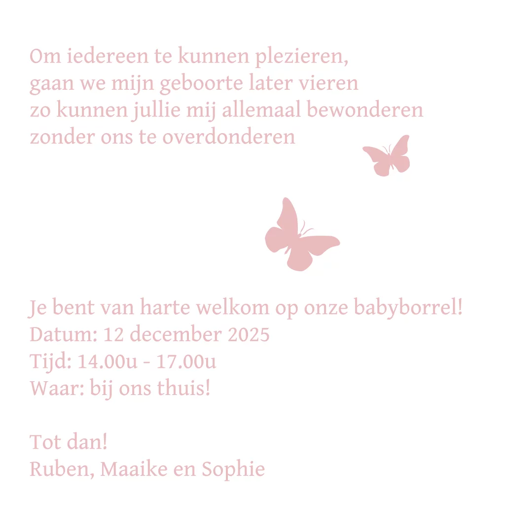 Lieve kraamfeest uitnodiging met silhouet en vlinders