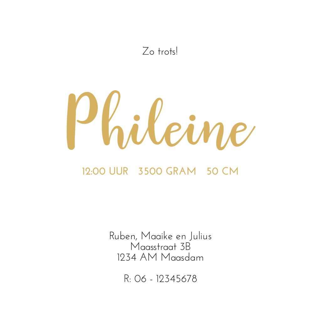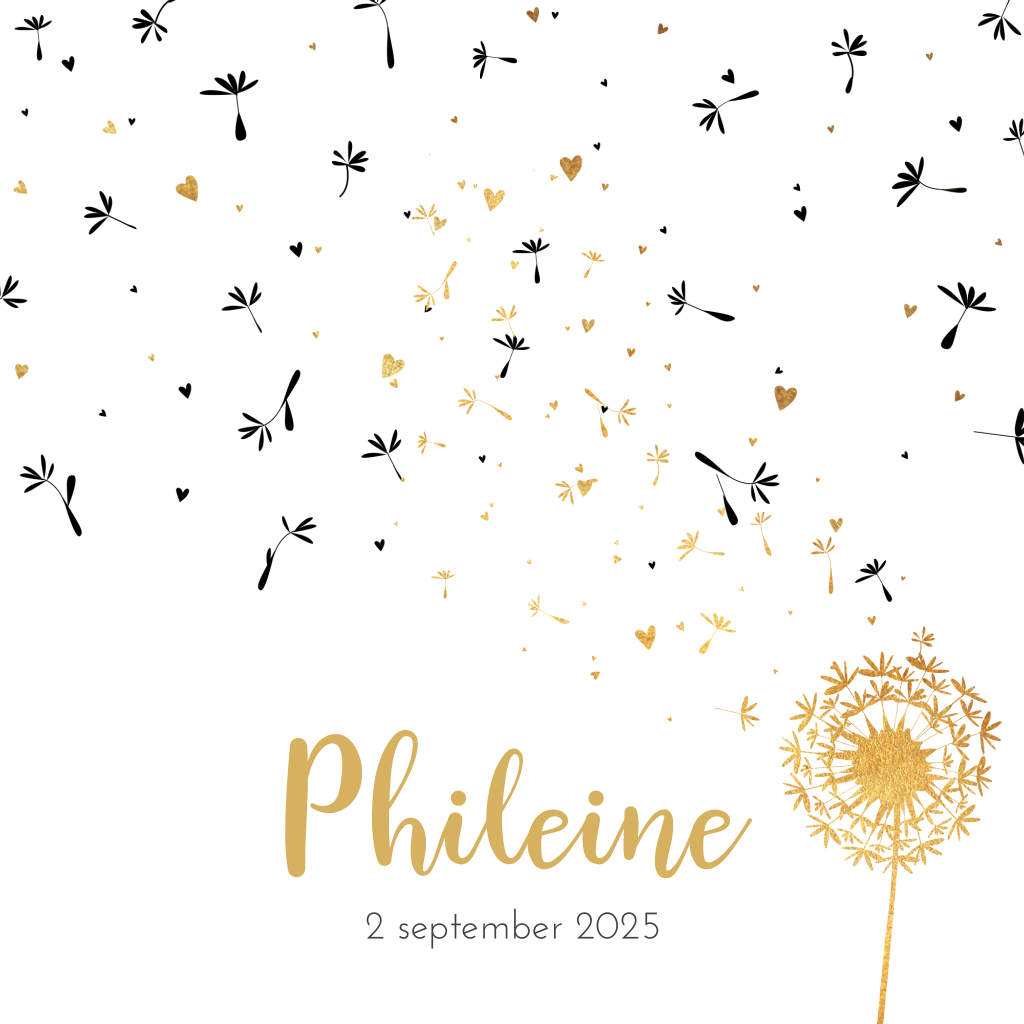 Lief geboortekaartje voor meisje met paardenbloem in goudlook