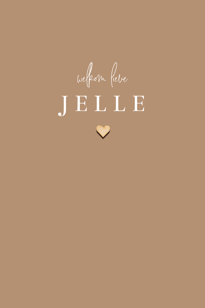 Minimalistisch geboortekaartje voor je pasgeboren zoon in roestbruin met lief houten hartje. Verander de lettertype en kies een andere trend kleur en maak je bestelling compleet!