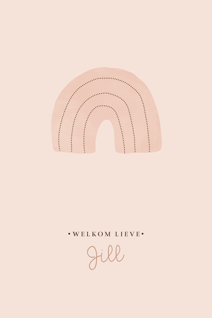 Deze hippe babykaart is voor een meisje. De zachte tinten geven hem een rustige uitstraling. Ook leuk is de hippe regenboog! Lettertypes en teksten kun je zelf eenvoudig aanpassen. Maak er jouw persoonlijke kaartje van!