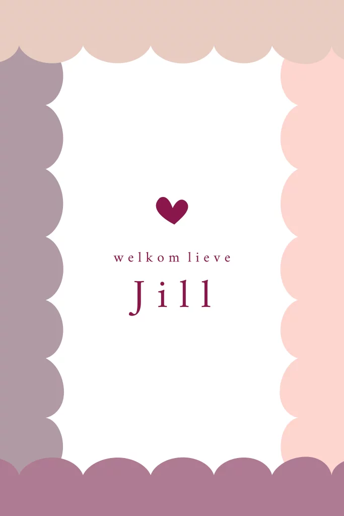 Een hip en vrolijk geboortekaartje voor jouw dochter. Het kaartje heeft paarse en roze tinten een speelse vormen. In het midden lees je de naam van het kindje. Pas het ontwerp naar wens aan in onze online editor.
