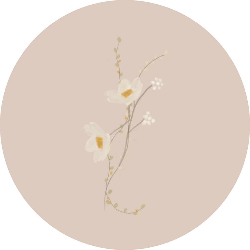 Schattige sluitsticker in zacht poederroze met een slinger van bloemen als illustratie.