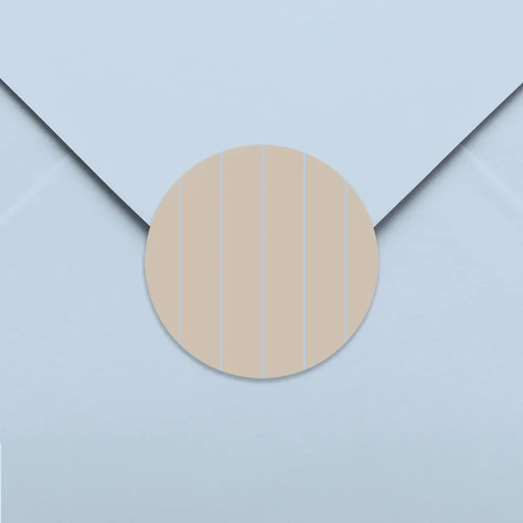Een hippe sluitsticker voor op de envelop van het geboortekaartje. De sticker heeft een beige streepjespatroon. Pas het ontwerp naar wens zelf aan. De sluitstickers hebben een diameter van 35 mm en worden geleverd op vellen van 25 stuks.