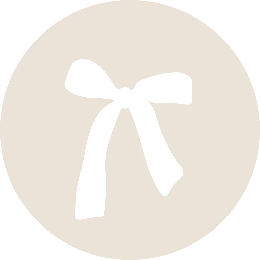 Een beige sluitsticker met daarop een witte strik. Het ontwerp is naar wens aan te passen in onze online editor.