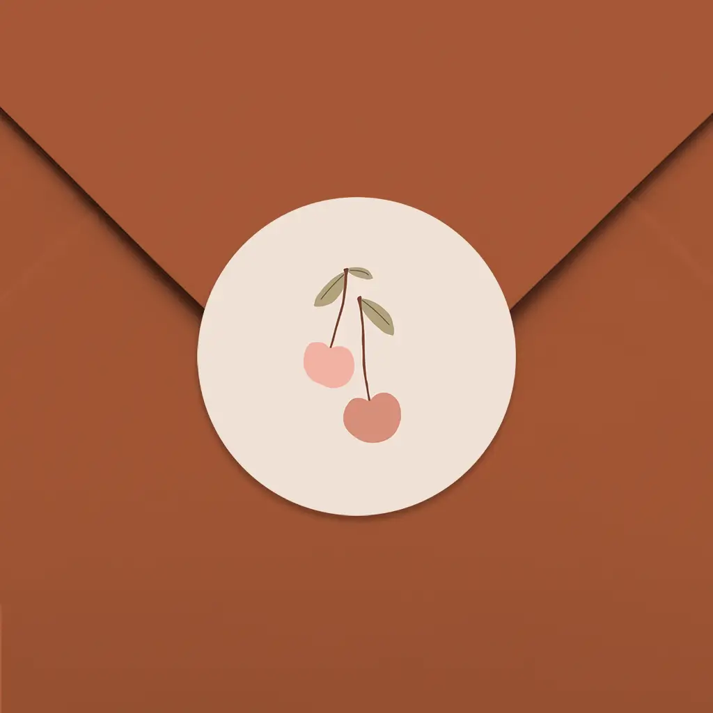 Een lieve sluitsticker in lieve pastelkleuren. Op de sticker zie je twee kersjes. De sticker past perfect bij het geboortekaartje van onze designer Huis van Mijn. Kies naast deze sluitsticker een bijpassende envelop en jouw geboorteaankondiging is compleet. De sluitstickers hebben een diameter van 35 mm en worden geleverd op vellen van 25 stuks.