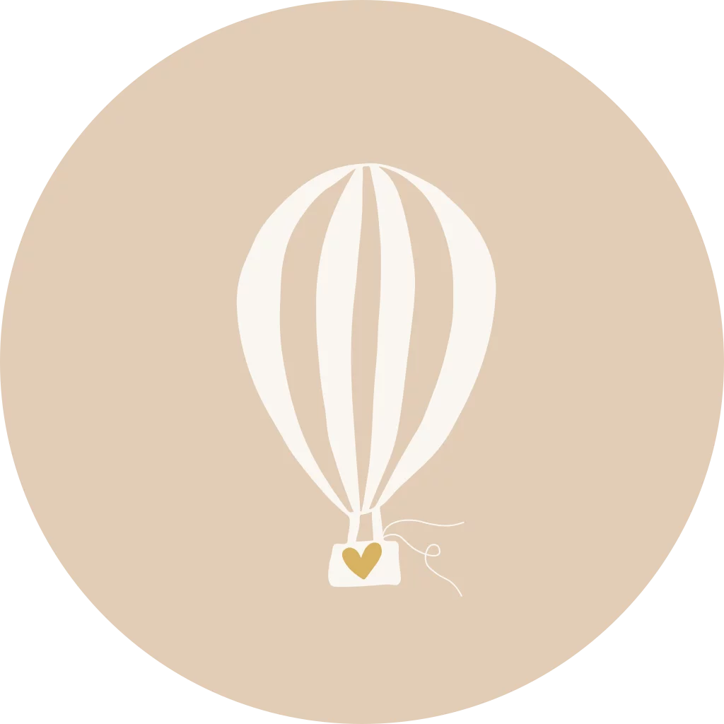 Maak eenvoudig zelf een sluitsticker! Deze sticker heeft een aardetint als achtergrond. Daarop zie je een luchtballon met hartje. Pas het ontwerp naar wens aan in onze online editor.