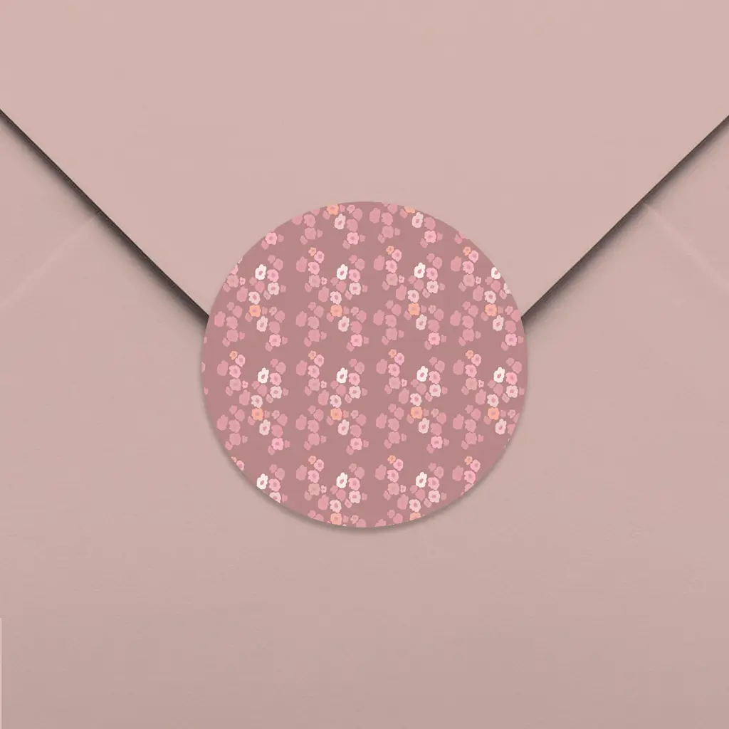 Schattige sluitsticker met oudroze achtergrond en patroon van kleine bloemetjes. Bewerk het ontwerp eenvoudig in de editor.
