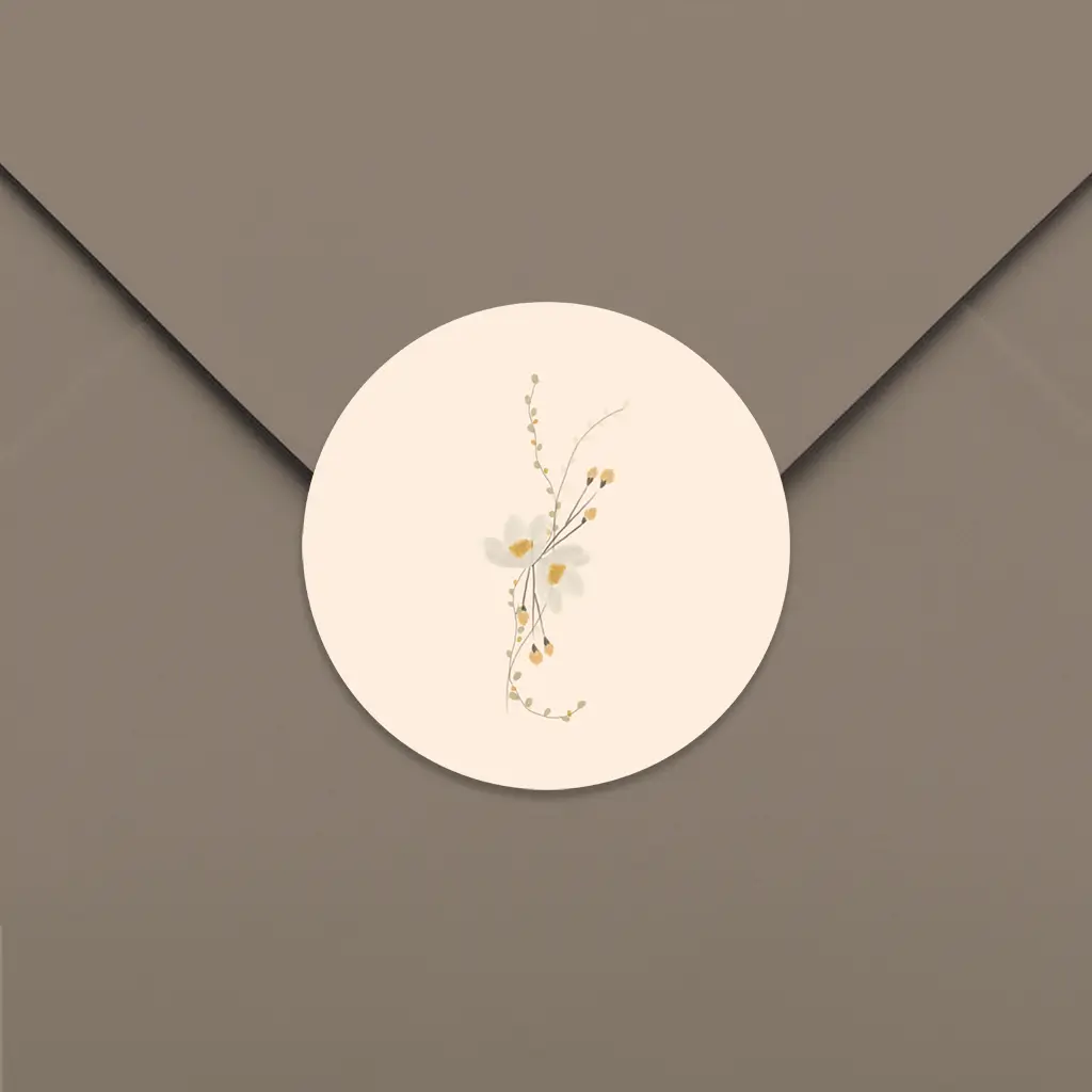 Maak het versturen van de geboortekaartjes een feestje met deze stijlvolle sluitsticker! De sluitsticker heeft een lichte achtergrond. Centraal op de sticker zie je de watercolour illustraties van bloemen. De sluitsticker is volledig naar wens aan te passen in onze online editor. De sluitstickers hebben een diameter van 35 mm en worden geleverd op vellen van 25 stuks.