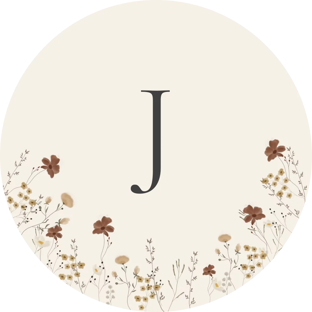 Een prachtige sluitsticker voor bij het geboortekaartje. Deze sticker heeft stijlvolle illustraties van verschillende veldbloemen, met daarboven de initiaal van je kindje. De sticker is naar wens aan te passen in onze online editor.