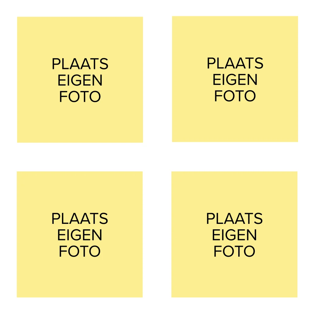 Vierkant, dubbel geboortekaartje die je zelf helemaal naar wens kunt pimpen! Op de voorkant kun je vier foto's van jouw baby toevoegen. Wees creatief en kijk vooral ook bij onze keuze aan enveloppen en sluitzegels om deze collagekaart echt af te maken!