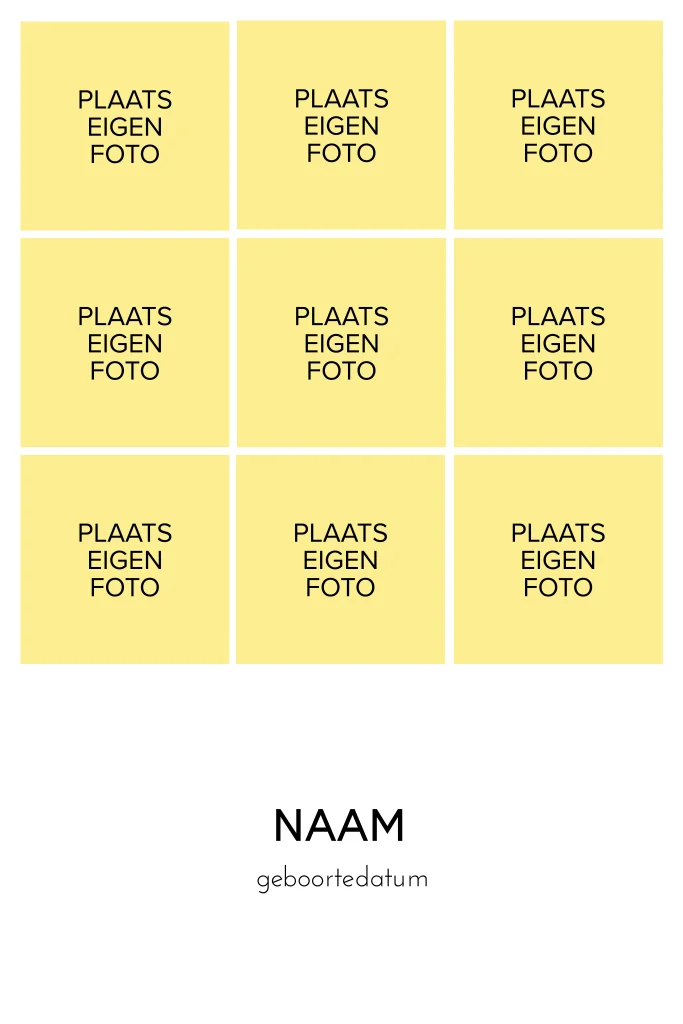 Zelf maken geboortekaart met 9 fotoframes