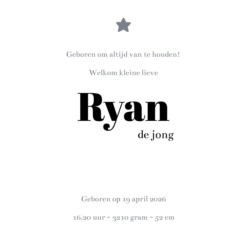 Maak zelf je geboortekaartje met de foto van jullie kindje erop. Liever een ander lettertype? In onze editor hebben er een ruim aanbod beschikbaar. Bestel een eerste proefdruk en ontvang een leuk verrassingspakket.