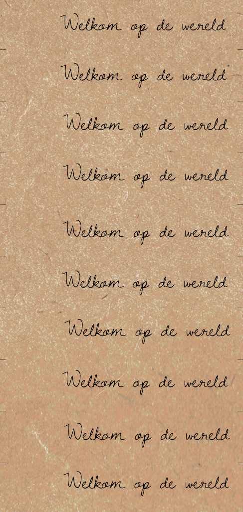 Hippe vintage labels met kraft-look voor je geboortekaartje van ongeveer 2 bij 10 centimeter, met de tekst Welkom op de wereld. Druk dit kaartje af op Oud-Hollands papier om een echte kraftlook te krijgen.